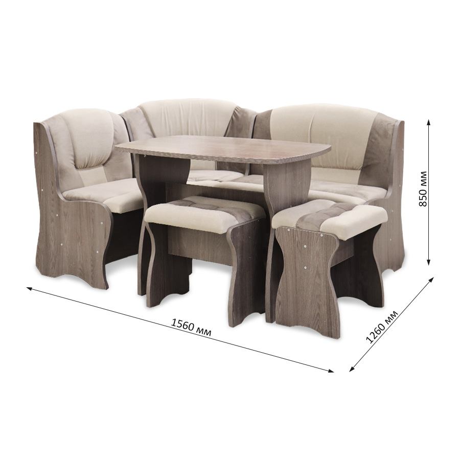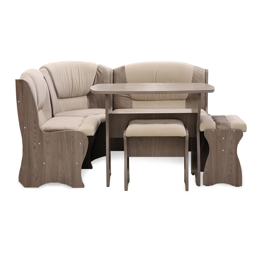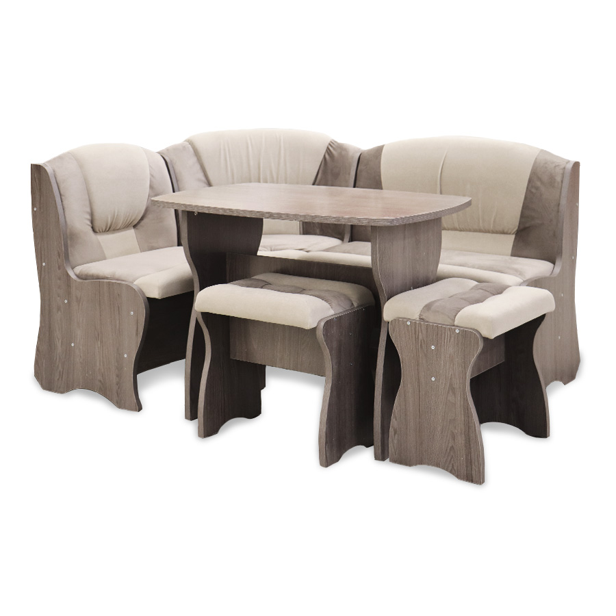 Обеденная группа "Комфорт", анкор темный/ткань в ассорт. (скамья, стол, табурет)