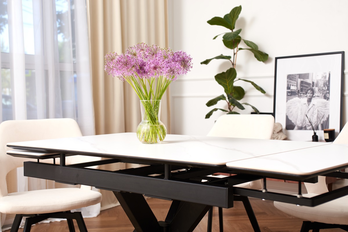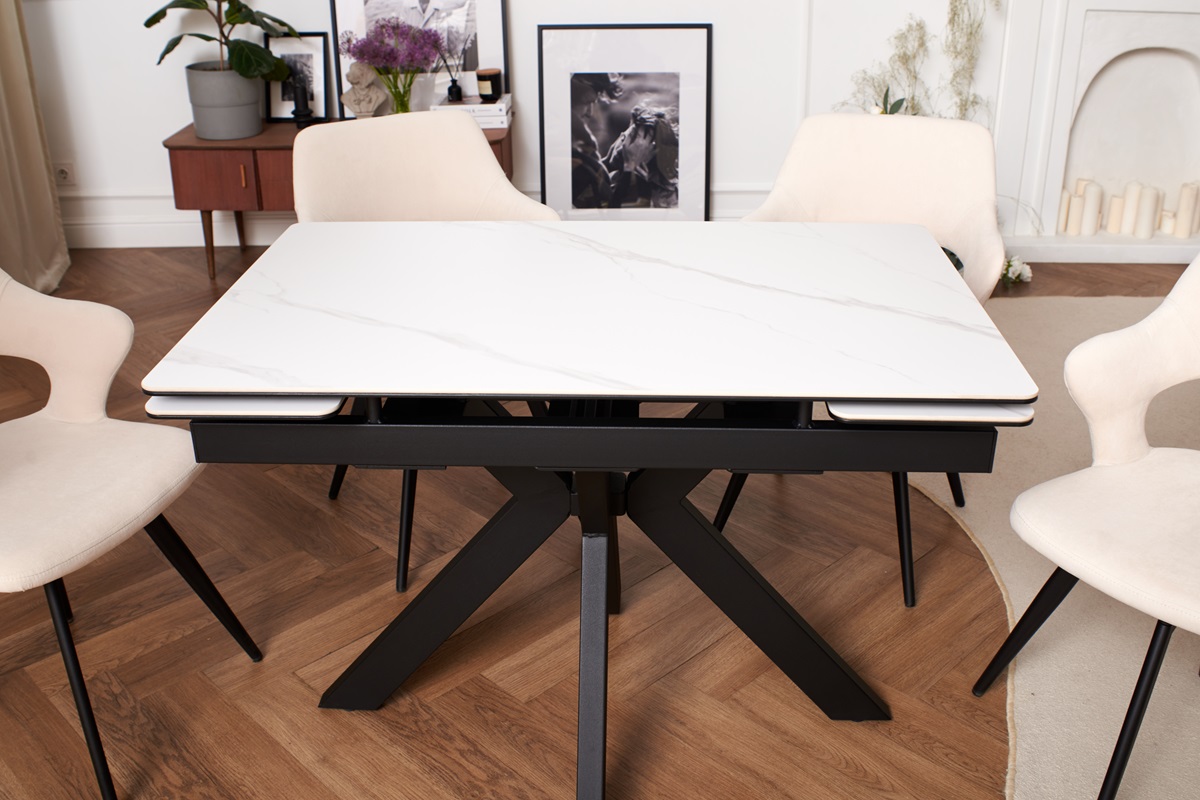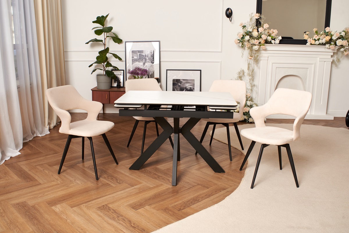 - Прочные и надежные материалы: столешница стола выполнена из керамогранита, который славится своей прочностью и долговечностью. Этот материал не выцветает и не впитывает жидкости.