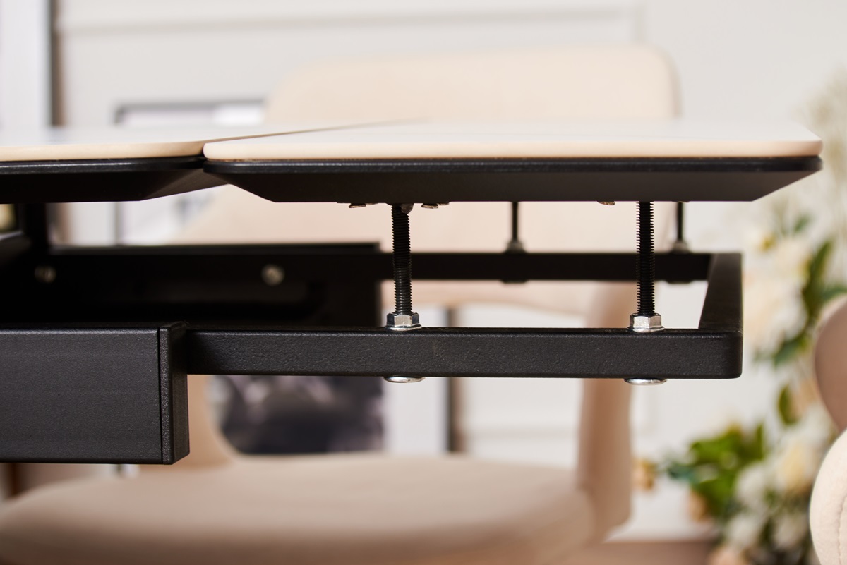 - Продуманные габариты: в собранном виде он имеет размеры 110х70 см, а благодаря уникальной торцевой раскладке с вставками длиной 25 см, вы сможете легко увеличить его площадь, чтобы разместить всех желающих. Такие вставки обладают усиленными креплениями, что обеспечивает надежность в использовании — даже если вы решите облокотиться на них, они останутся на своем месте, не прогибаясь.