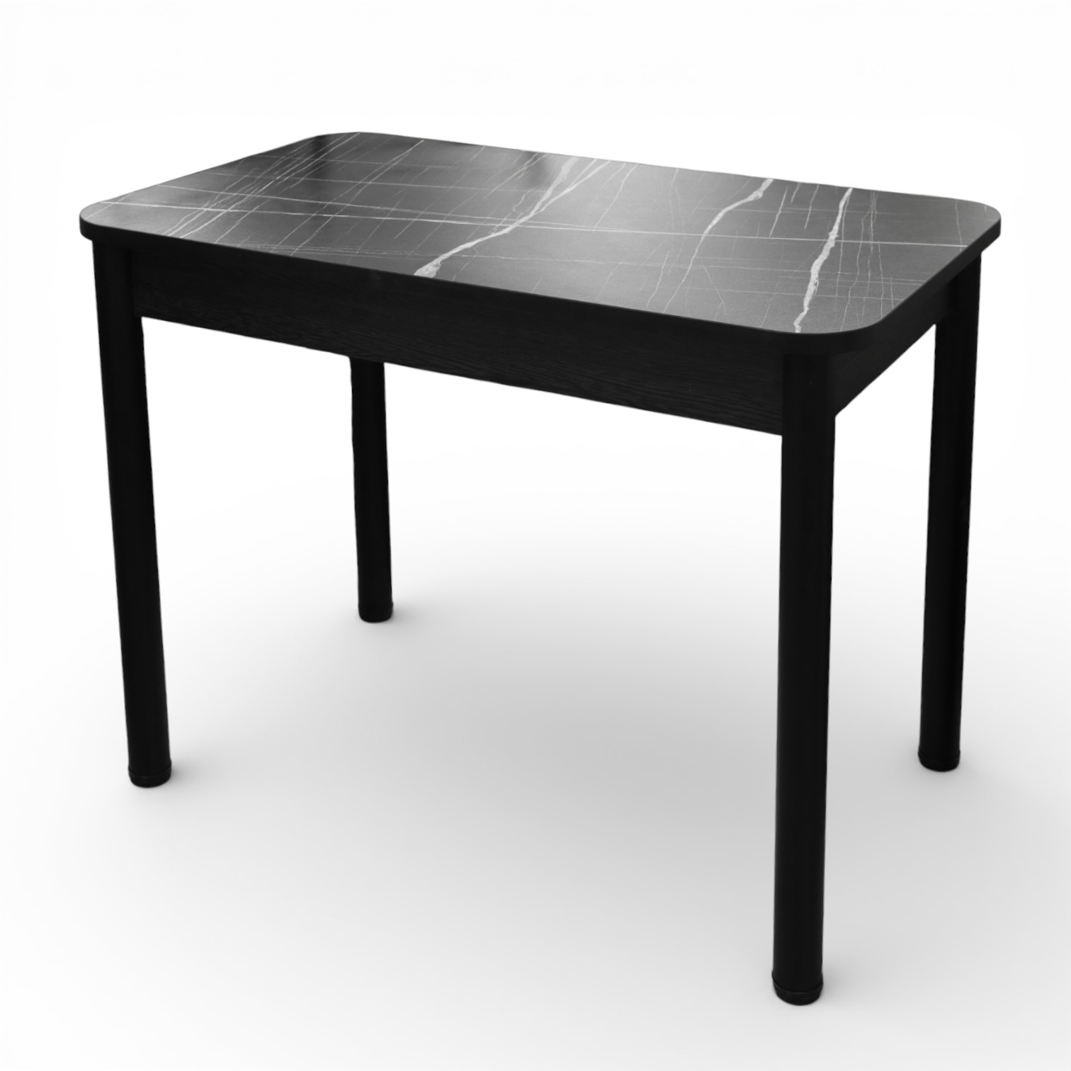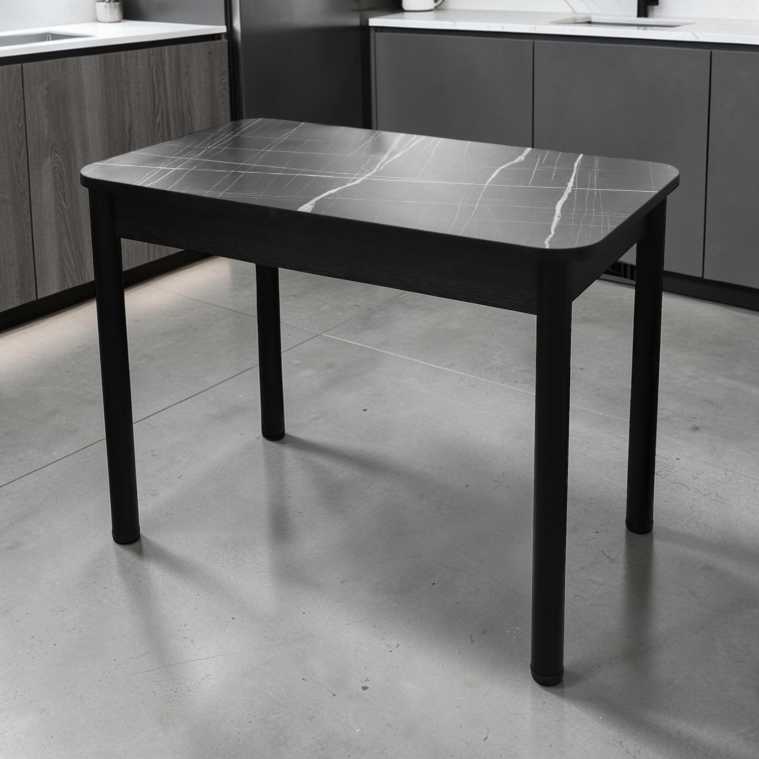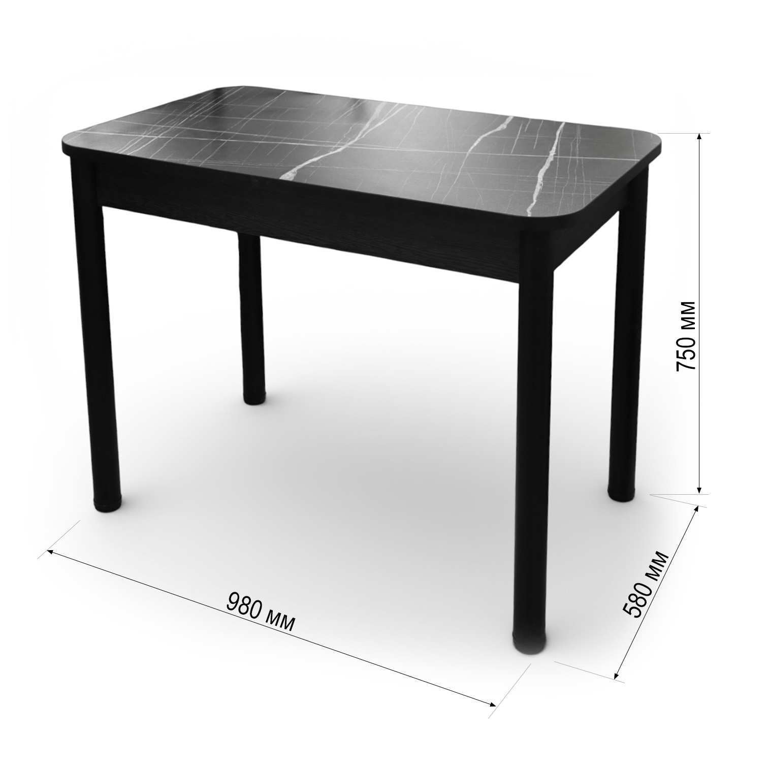 —Стол Беседа 980*580 Пластик(Мрамор Тунис черный)B1,Опоры черные+ЛДСП(Бодега темный)