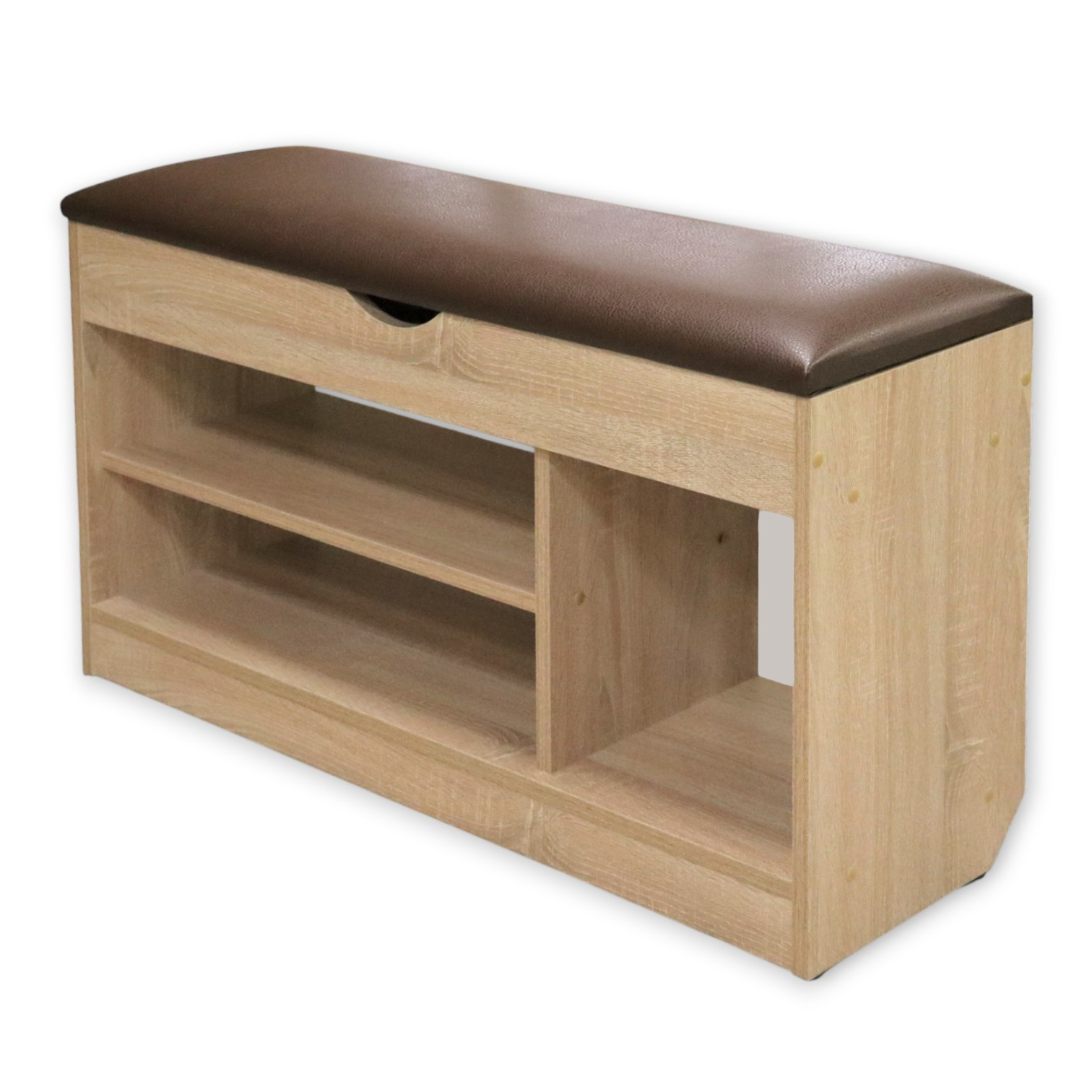 Тумба для обуви БН-196-04 (900*310*510) дуб сонома/кожзам 305-02 корич