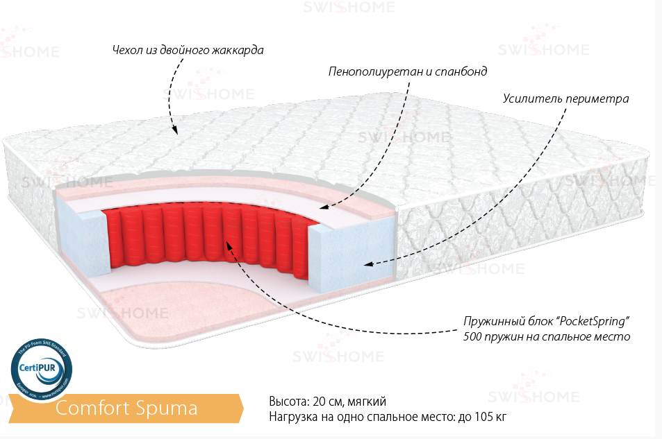 Матрас "Комфорт Спума" гарантирует сон, словно на мягкой перине.